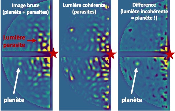 Les exoplanètes, planètes orbitant autour d’étoiles autres que le Soleil, sont aujourd’hui majoritairement découvertes par transits. Mais cette technique apporte peu d’informations sur celles situées dans la zone habitable. L’imagerie directe est la voie la plus prometteuse pour caractériser ces planètes et leurs atmosphères. Les futures missions – Habitable Worlds Observatory (HWO) pour la NASA et PCS sur l’ELT – visent précisément cet objectif, malgré les défis posés par des rapports de luminosité étoile-planète extrêmement importants. Pour réduire les risques technologiques associés à PCS et HWO, l’Europe et les états-unis développent deux démonstrateurs : VLT/SPHERE+ (2027) et la mission Roman (2026). Alors que les imageurs actuels n’ont détecté qu’une poignée de planètes géantes, l’instrument SPHERE+ sur le VLT représente une opportunité unique avec un double objectif. Un objectif astrophysique : imager de nouvelles planètes en utilisant des techniques de pointe, et instrumental : augmenter la maturité technologique des méthodes haut contraste. Dans ce cadre, les approches inédites proposées dans ECHOES sont pertinentes à la fois pour les instruments sol et spatiaux. Elles seront testées sur SPHERE+, elles pourraient être utilisées sur Roman, et constituent des technologies clés pour HWO et PCS.