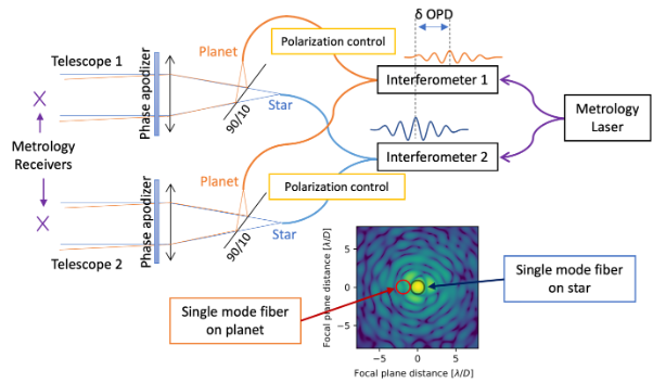 The PLANETES project aims to revolutionize exoplanet detection and characterization by developing an advanced ground-based interferometric system capable of high-contrast observations in the J-band. By enhancing dual-beam optical interferometry capabilities, PLANETES will be the first ground-based instrument capable of observing exoplanets through reflected light with a contrast range of 10 million, significantly expanding current detection capabilities. The PLANETES team will employ laboratory demonstrations followed by on-sky implementation at the VLTI, leveraging the existing GRAVITY instrument for fringe tracking and pupil stabilization. PLANETES collaborates with First Light Imaging (now part of Oxford Instruments) to implement breakthrough detector technology from LEONARDO. The partnership focuses on the ME1230, a revolutionary large format avalanche photodiode detector that combines exceptionally low read noise (<0.3 e⁻/pix/frame) with ultra-low dark current (<0.01 e⁻/pix/s). This cutting-edge detector technology is crucial for achieving the photon-limited performance required for PLANETES' high-contrast exoplanet observations and precision interferometry.